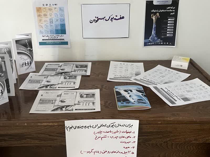 در این میز خدمت، حیدری، مامای مرکز بهداشت، به ارائه آموزشهای لازم در خصوص راهکارهای پیشگیری از پوکی استخوان و افزایش تراکم استخوان پرداختند. بازدیدکنندگان در جریان این برنامه با نکاتی مهم از جمله تغذیه مناسب، انجام فعالیتهای ورزشی و سبک زندگی سالم برای تقویت استخوانها آشنا شدند.