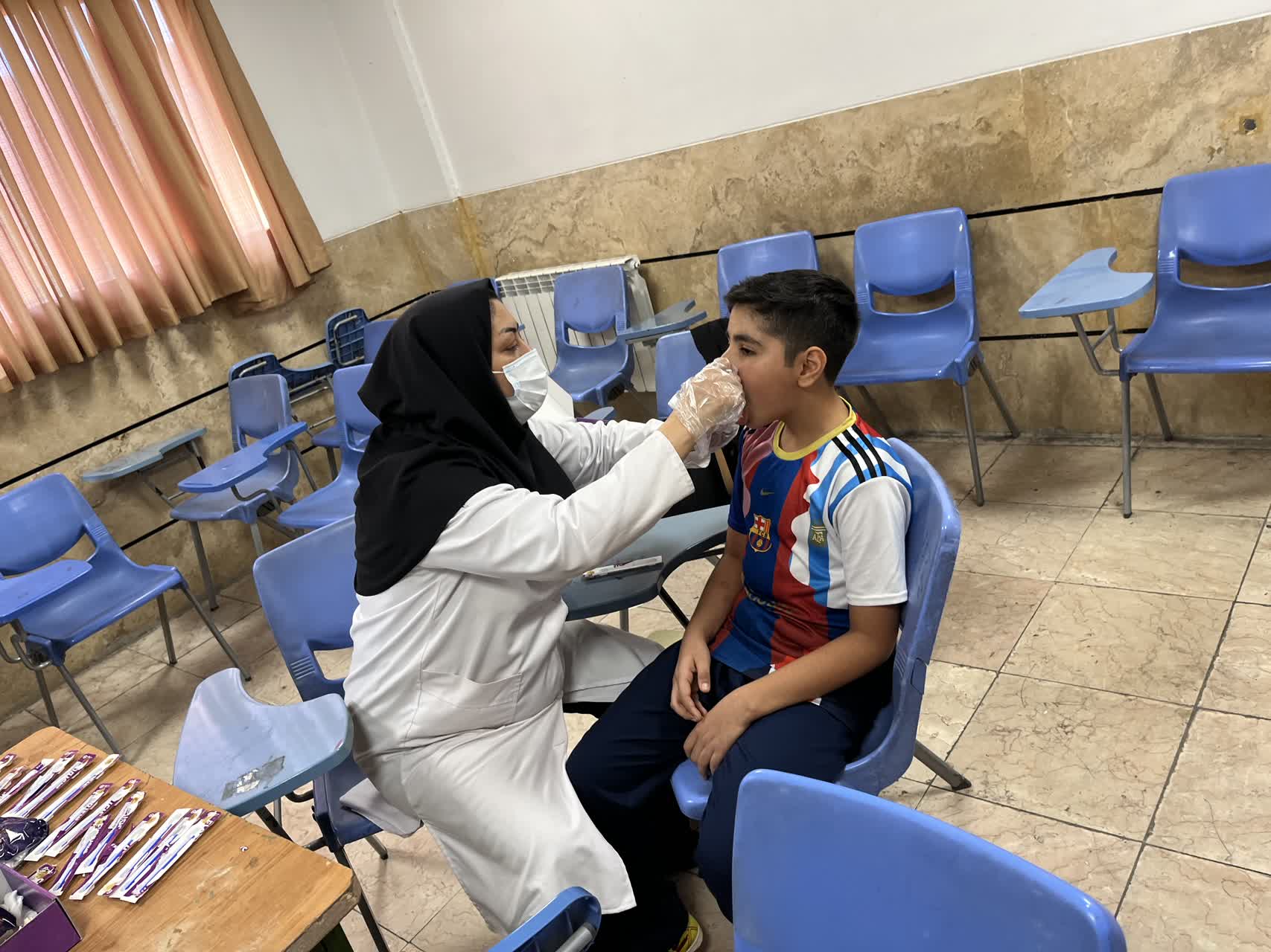 پس از برگزاری جشن، صالحی مراقب سلامت مرکز به همراه گروهی از دانشجویان پزشکی در مدرسه حاضر شده و اقدام به انجام وارنیش فلوراید تراپی برای دانشآموزان نمودند. این اقدام به منظور پیشگیری از پوسیدگی دندانها و تقویت مینای دندان انجام گرفت و با استقبال دانشآموزان و کادر آموزشی همراه بود.