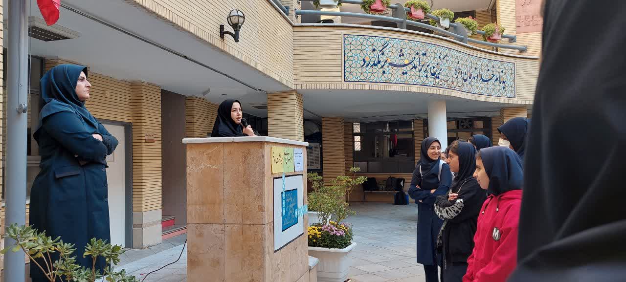 • خانم پورجم، به مناسبت روز جهانی کاهش اثرات بلایای طبیعی، در خصوص اصول ایمنی در آتشسوزی، کار با کپسولهای آتشنشانی، روشهای اطفاء حریق و حوادث ناشی از انفجارهای اتمی آموزش دادند.