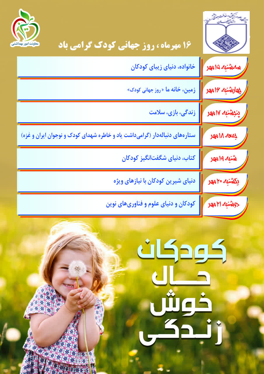 روز شمار هفته کودک آغاز هفته کودک 16 مهر ماه، روز جهانی کودک گرامی باد کودکان حال خوش زندگی #روزشمار_هفته_کودک