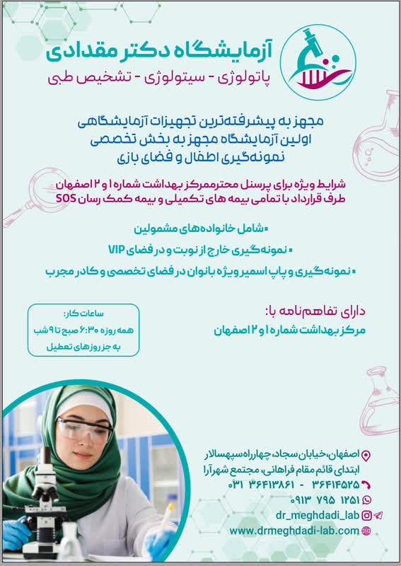 جهت کسب اطلاعات بیشتر و هماهنگی، پرسنل محترم میتوانند با آزمایشگاه دکتر مقدادی تماس حاصل فرمایند