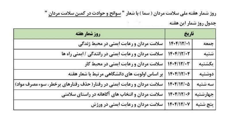 روز شمار هفته ملی سلامت مردان ایرانی (سما)